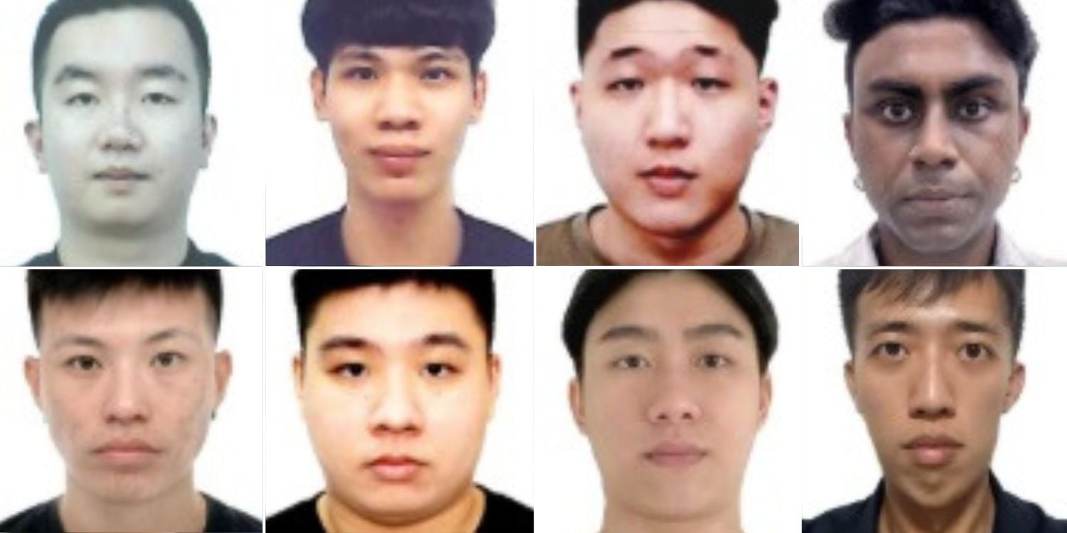 Eight of the Singaporean suspects. Source: Singapore Police Force