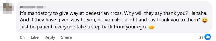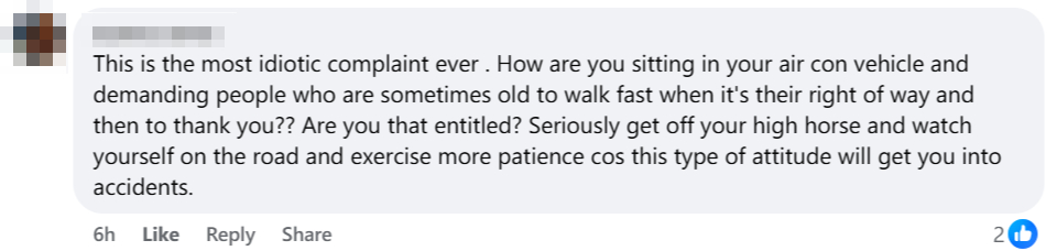 A Facebook post by a driver expressing frustration over slow-walking pedestrians at zebra crossings has sparked discussion among road users on both sides.