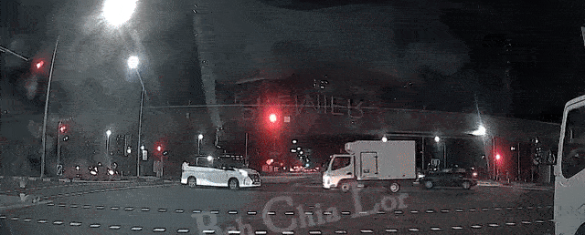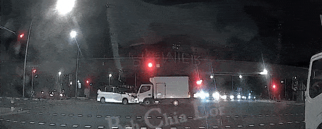 At the start of the video, a white lorry can be seen rolling slowly across the junction.