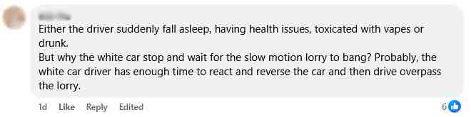 One netizen shared multiple possibilities as to why the truck was creeping across the junction, but was puzzled as to why the car driver did nothing to avoid the collision.