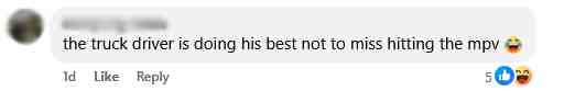 Another netizen joked about how the truck driver was “doing their (his) best not to miss hitting” the car.