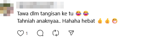 Translation: Is that laughter within tears? Congratulations to the son, brilliant!