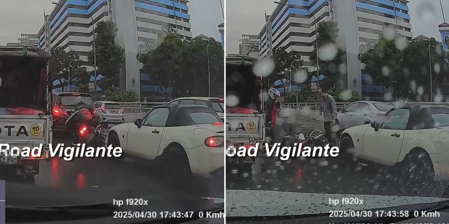 However, one netizen blamed the rider instead, saying they cut the queue by lane splitting and stopping in front of the sports car.