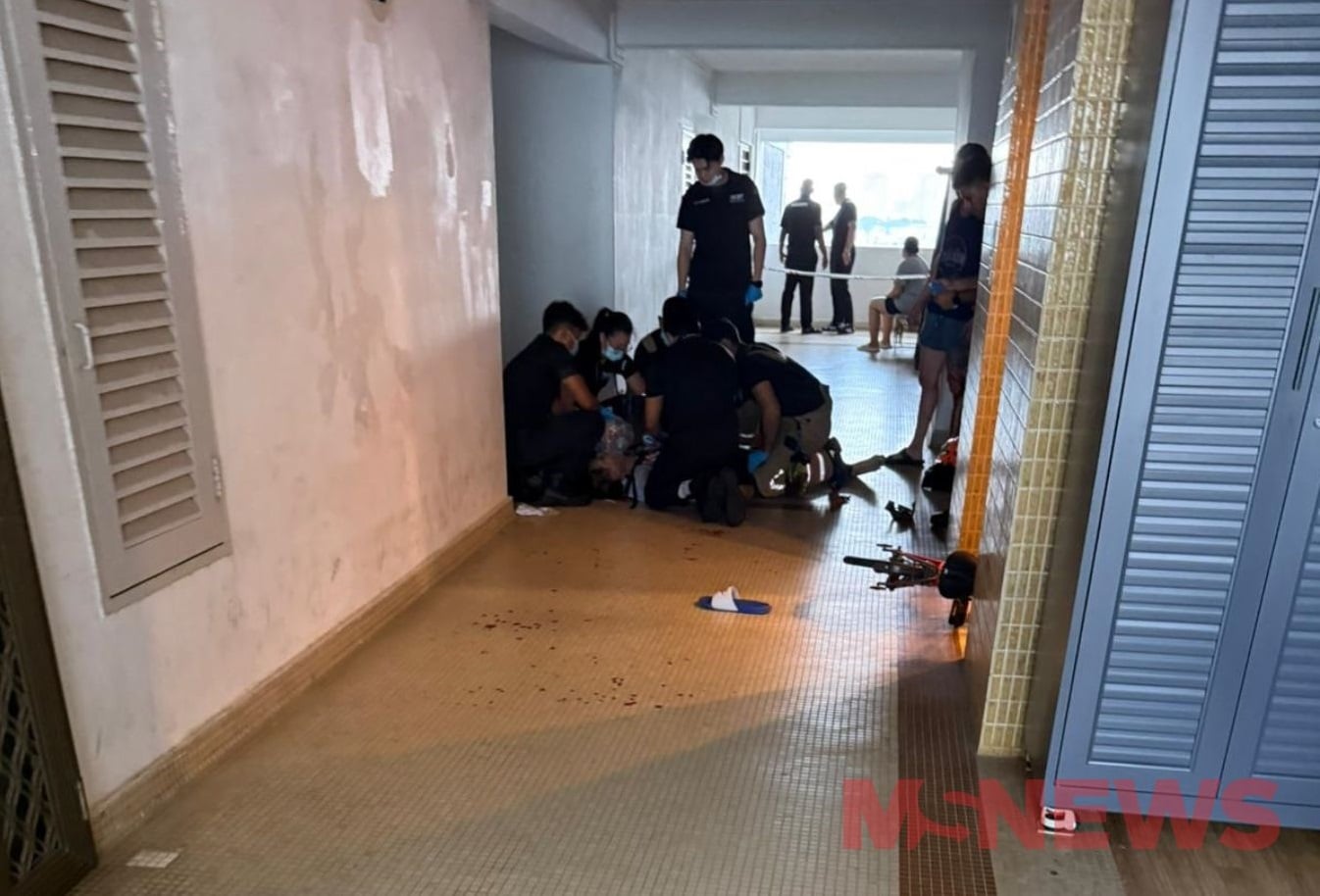 A resident of Laguna Park sent MS News photos showing paramedics attending to a person lying in a cordoned-off corridor.