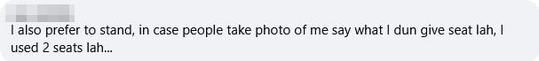 Another Facebook user said they preferred to stand in case someone took photos of them to complain about not giving up a seat.