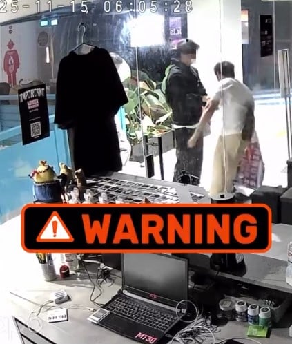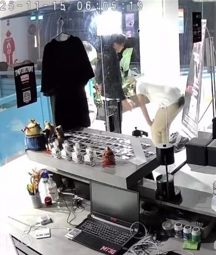 In the clip, which had a time stamp of 6.05am on 15 Nov, the seemingly drunk young man in a white T-shirt was doubled over near the entrance of the Muay Thai studio, which is located in GR.iD mall along Selegie Road.