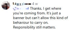 Replying to a commenter, Mr Lim acknowledged that the object was just a banner but he wanted to pursue the matter because he “can’t allow this kind of behaviour to carry on”.