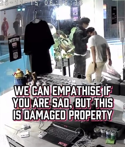 CCTV footage of the act was posted on Instagram by MT30 co-founder Benjamin Lim last month, showing the man felling the standee with one hand.