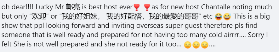 On the Singapore subreddit, netizens slammed the show’s production quality, and in particular, co-host Chantalle Ng.