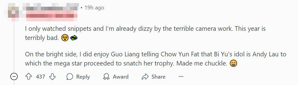 In addition to criticising the show hosts, some netizens were also unhappy with the award show’s production quality.