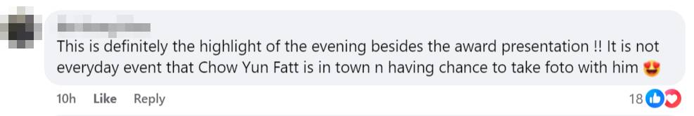 “This is definitely the highlight of the evening besides the award presentation,” one commenter gushed, excited. “It is not every day (sic) that Chow Yun Fat is in town.”