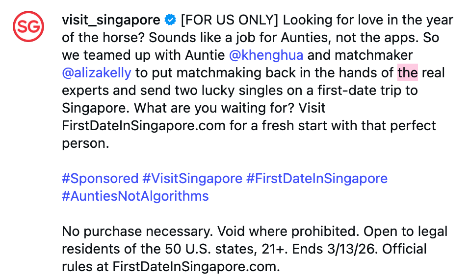 Singapore Tourism Board launches ‘Aunties, Not Algorithms’ in US to set singles up