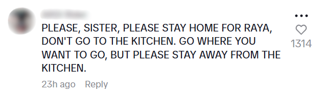 One user jokingly begged her to stay out of the kitchen during the upcoming Raya holiday.
