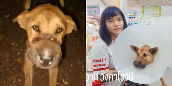 Stray dog in Thailand rescued after allegedly being caught in animal trap that tore away its mouth flesh