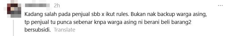 Translation: Sometimes the seller is wrong for not following the rules. Not to back up foreigners, but the seller is the real reason why these foreigners dare to buy subsidised items.
