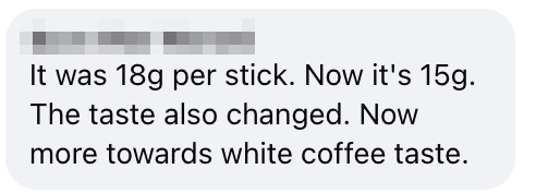 One netizen claimed that each coffee stick had shrunk from 18g to 15g, adding that the taste had also changed compared to earlier batches.