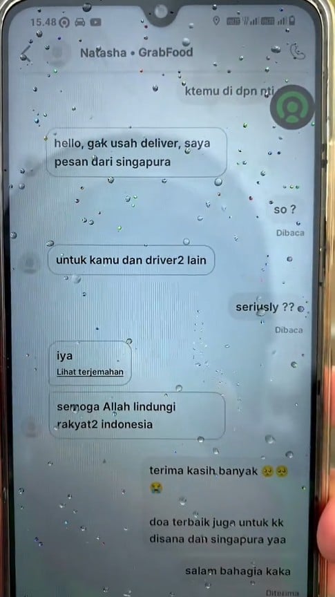 “Singaporeans still care about us, the people of Indonesia,” wept the rider, who also said that there were multiple such orders that day.