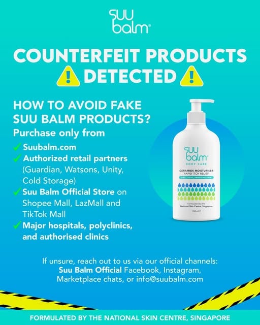 Popular Singapore skincare brand Suu Balm has issued a warning after counterfeit versions of its products were found being sold online, with some customers reporting adverse skin reactions.