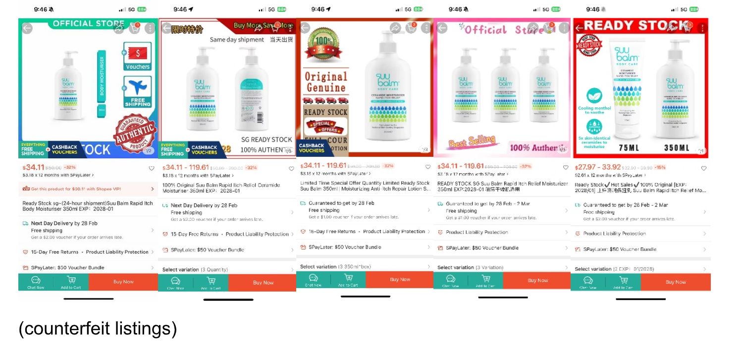 Suu Balm said it has taken down more than 100 suspected listings over the past two months, but noted that new ones continue to appear even after removals.