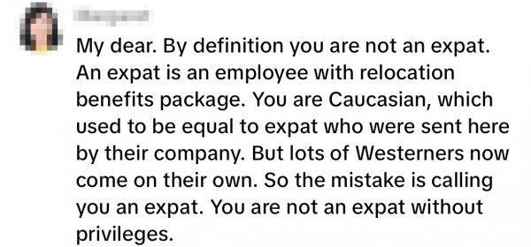 Another netizen echoed this, stating that being caucasian no longer equates to being an expat.