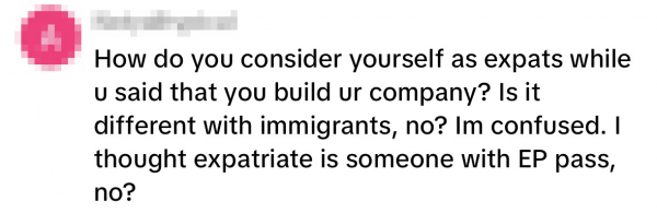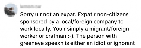Meanwhile, one netizen argued the expat label only applies to foreigners with an Employment Pass (EP) and not the OP, who is self-employed.