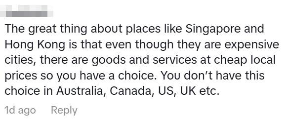 Comparing Singapore to other countries, this netizen said they are grateful that Singapore offer cheaper alternatives for goods and services.