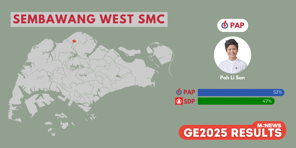 GE2025: PAP’s Poh Li San wins Sembawang West SMC with 53% of votes against SDP’s Chee Soon Juan Ms Poh Li San will continue looking after residents in Sembawang West. 7 months ago