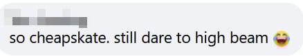 Another commenter questioned the other driver for using the high beams on the camcar when they were already being “cheapskate.”