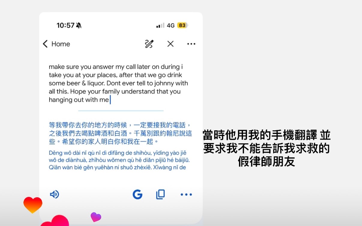 However, Ms Fang’s ordeal was not over as she had promised to go for drinks with the police officer.