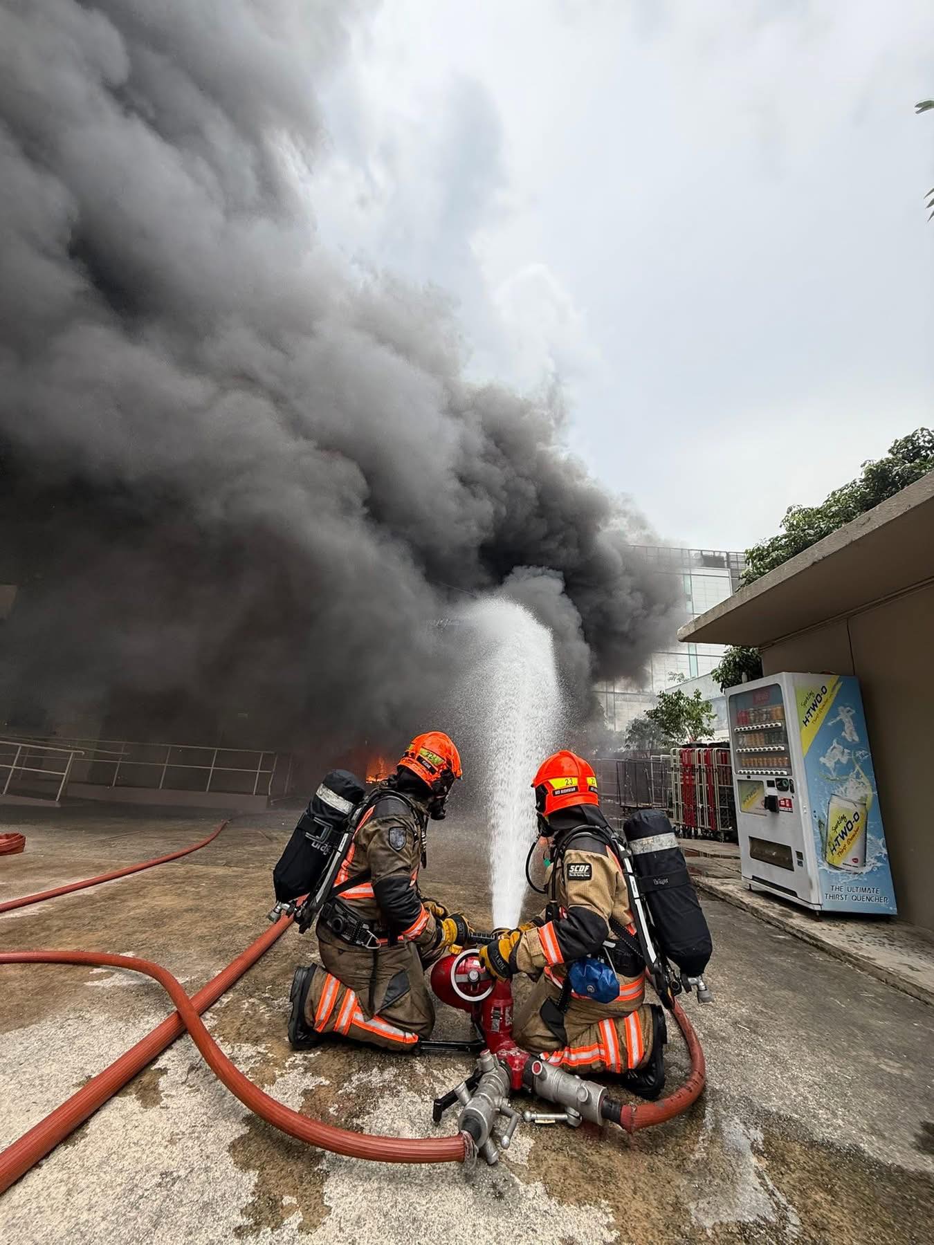 A fire broke out on Friday (9 May) at a three-storey industrial building located at 18 Tampines Street 92, behind SAFRA Tampines, triggering a large-scale emergency response.