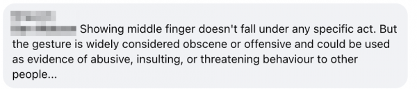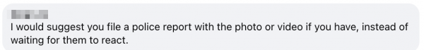 Some commenters suggested that the OP lodge a police report over the incident, noting that such behaviour could be considered offensive or provocative.