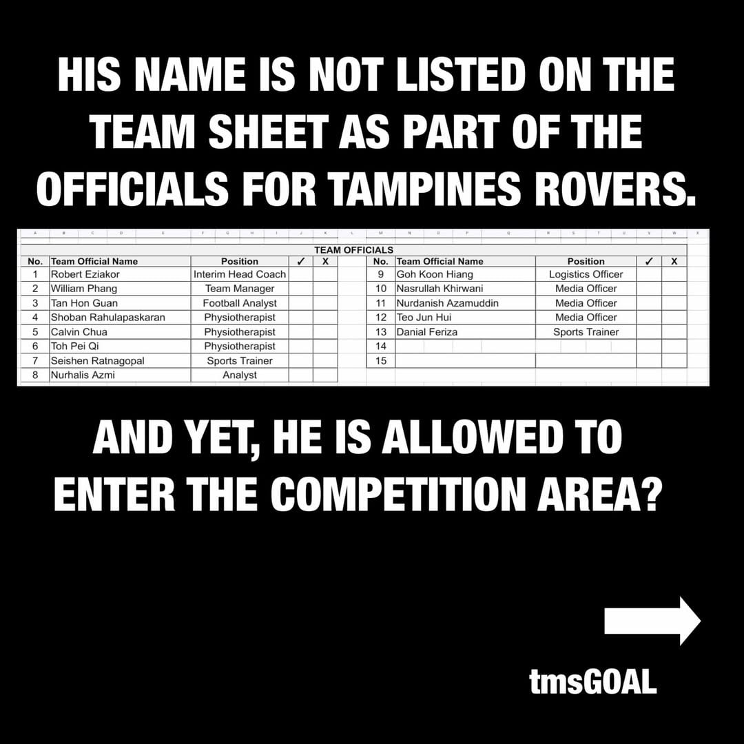 “As the unauthorised individual was not part of BG Tampines Rovers’ official delegation, the club has been fined S$2,000,” a FAS spokesperson said.