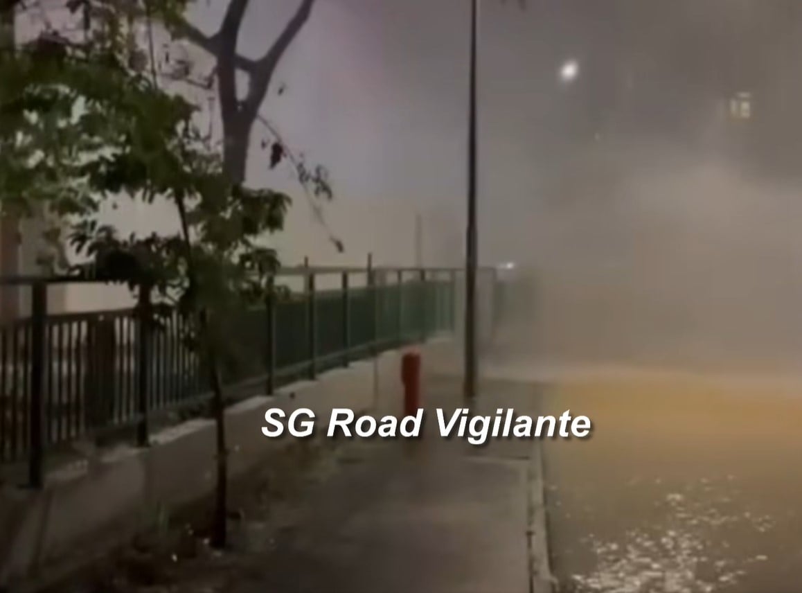 Video clips posted by SG Road Vigilante on Facebook showed the road flooded due to the water.