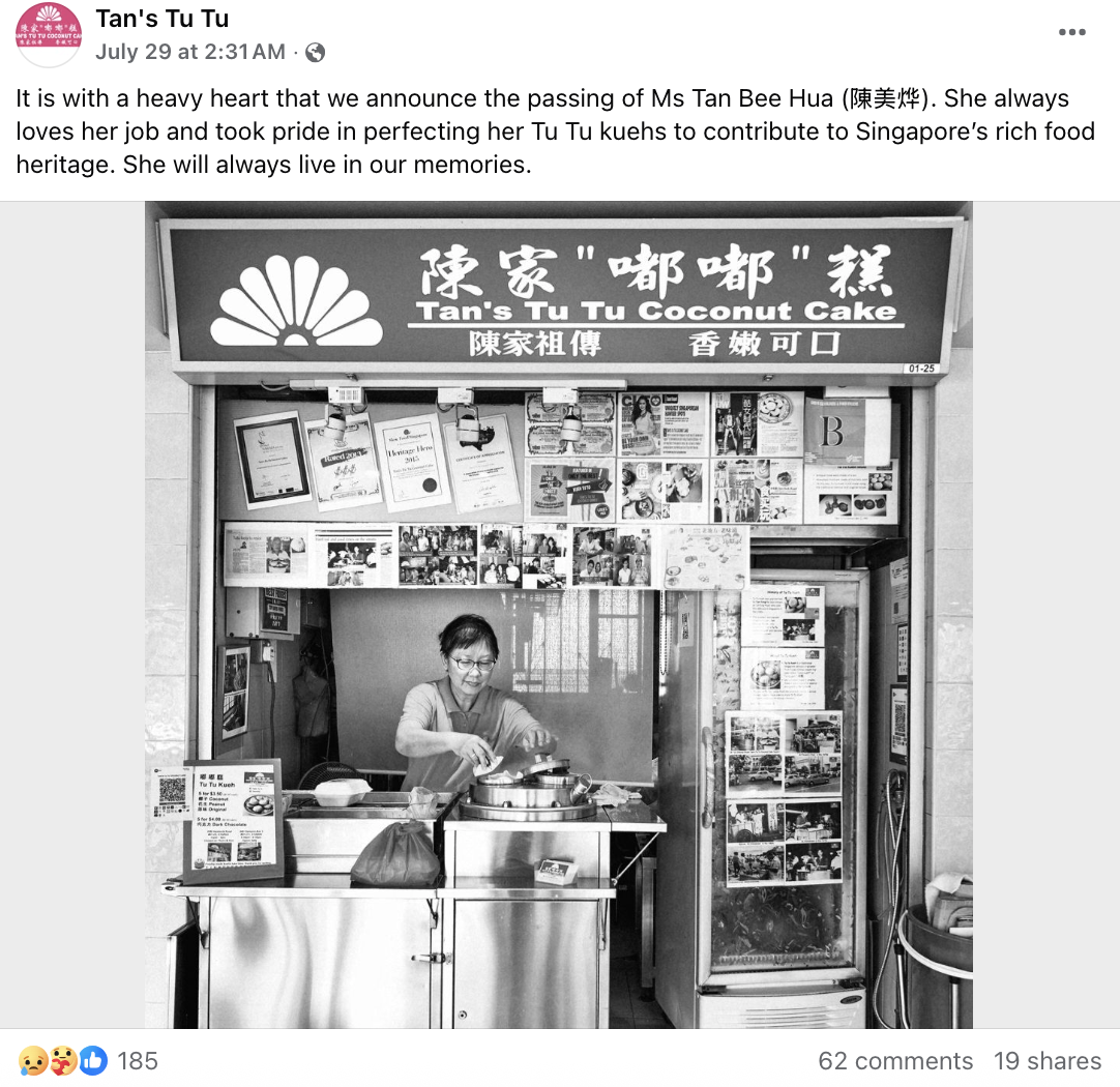 “Never say never. But as of now, a chapter of Tan’s Tu Tu kueh has come to a close. We will be closing our shutters in Havelock soon,” they wrote in a separate post.