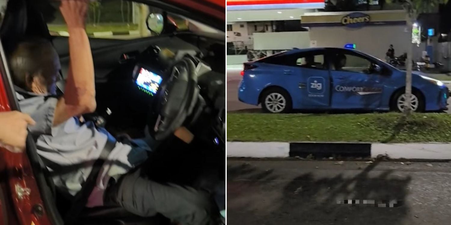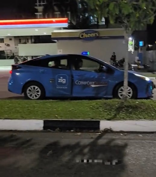 In the clip, a blue ComfortDelGro taxi was on one side of the road divider with its hazard lights flashing.