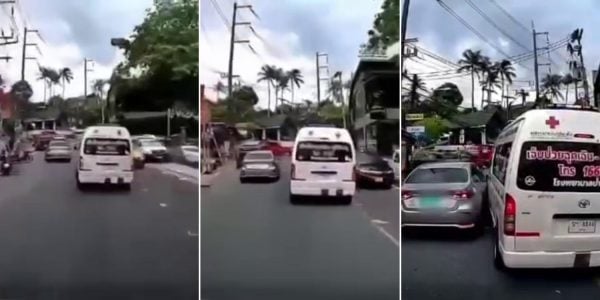 Taxi blocks ambulance on narrow road in Thailand, resulting in death of emergency patient