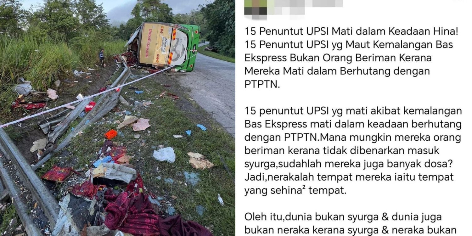 Earlier this week, a teacher took to Facebook to share his inflammatory views on the fatal bus crash involving Universiti Pendidikan Sultan Idris (UPSI) students.