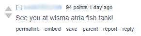 Another redditor listed a popular landmark they would use in town: the Wisma Atria fish tank.