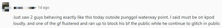 A netizen said they saw two guys behaving in the same manner outside Waterway Point mall in Punggol and remarked that they must be on Kpods.