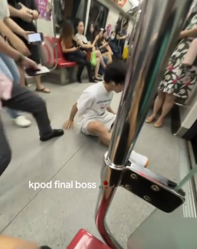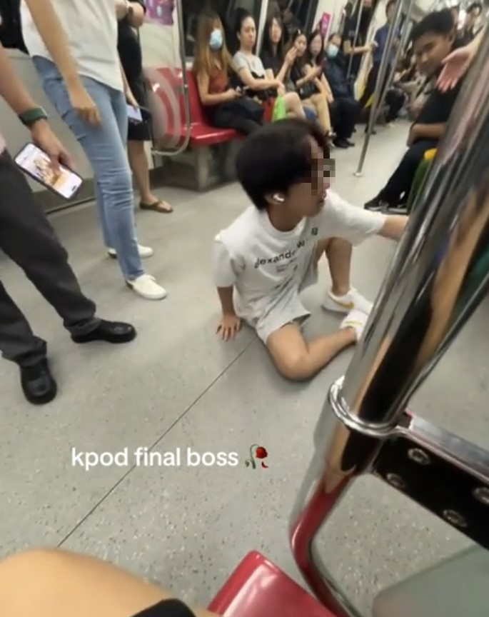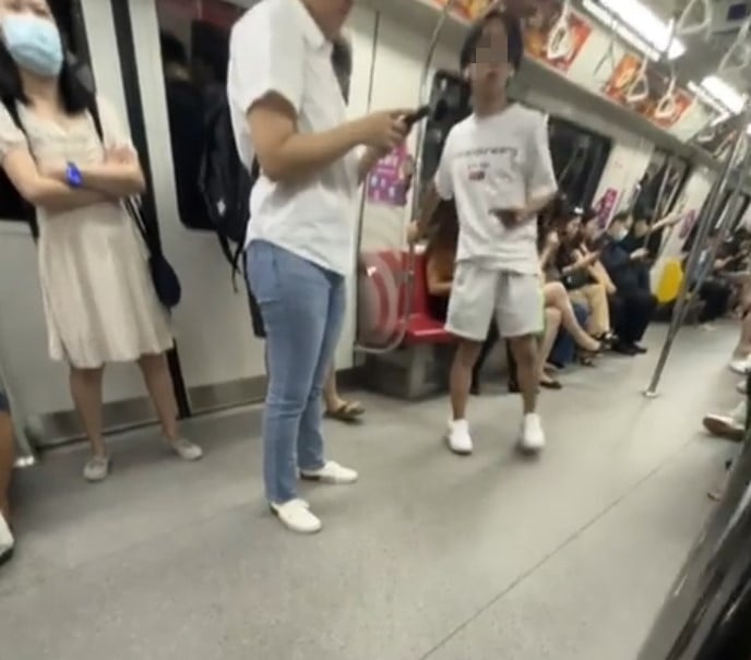 In a video posted on Reddit, the youth is seen standing up from his seat at Newton MRT station, holding on to a pole for support.
