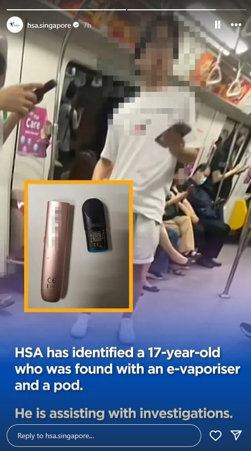 HSA identifies teenager in MRT, finds vape & pod on him