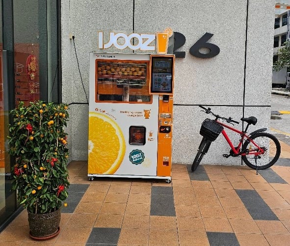 iJooz dispenses freshly squeezed orange juice, and its smart vending machines can be found across Singapore.