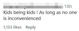 A commenter agreed, saying “kids being kids” is fine as long as no one is inconvenienced.