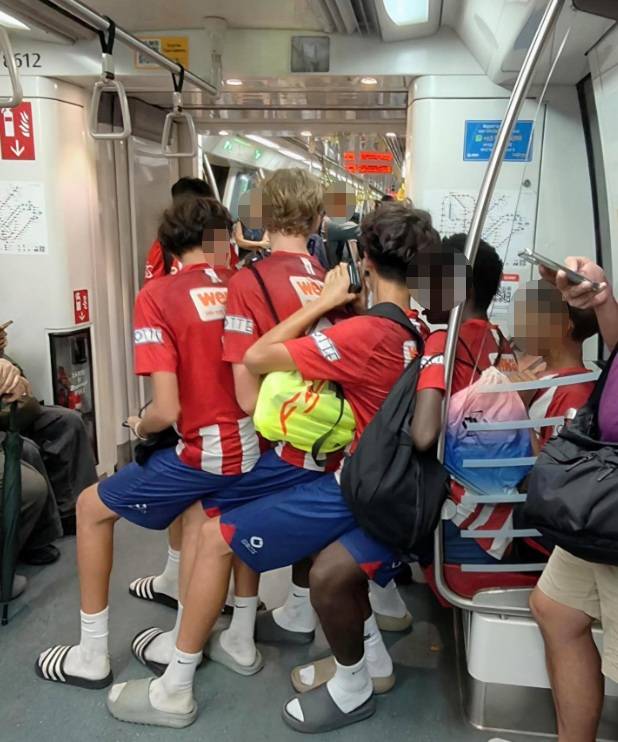 The incident, shared by @sgfollowsall on Instagram on 26 April, showed five boys dressed in matching football jerseys perched on top of one another on a single seat.