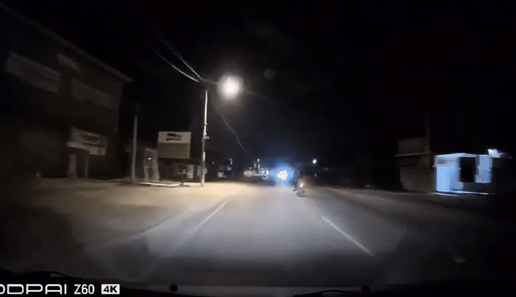 Dashcam footage showed a car driving down a street while the two boys, riding a motorcycle, overtook it on the other side of the road.