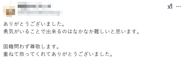 Translation: Thank you very much. I believe it is quite difficult to do something that requires courage. I respect you regardless of nationality. Once again, thank you for saving the man.