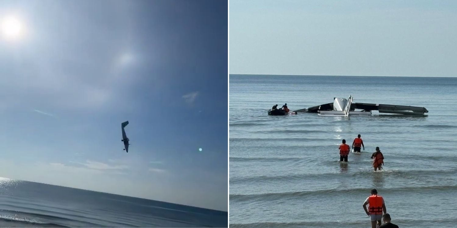 Photos of the aftermath show the plane split in half about 100 metres from shore.