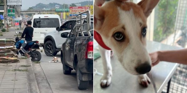 Man in Thailand ties dog to motorcycle & drags it along road, causes severe wounds on canine