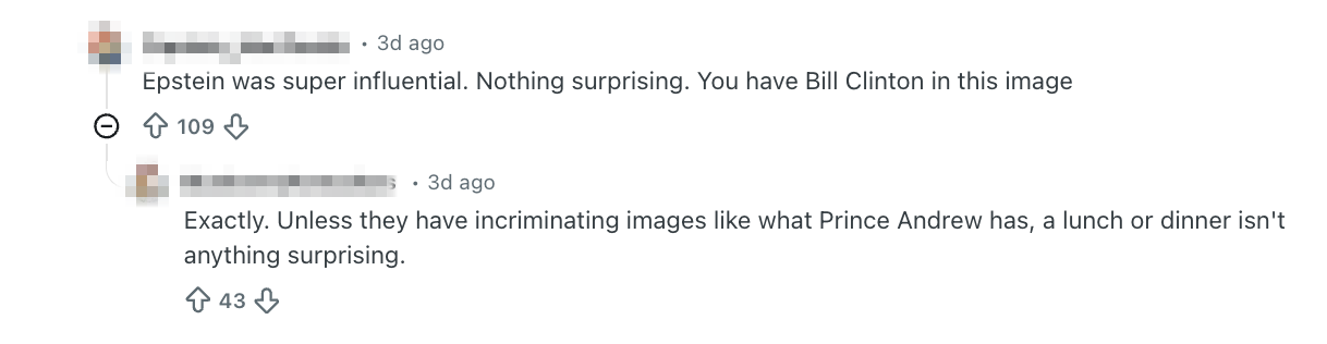 One Reddit user said that there was “nothing surprising” about the image, as Epstein was an influential figure.