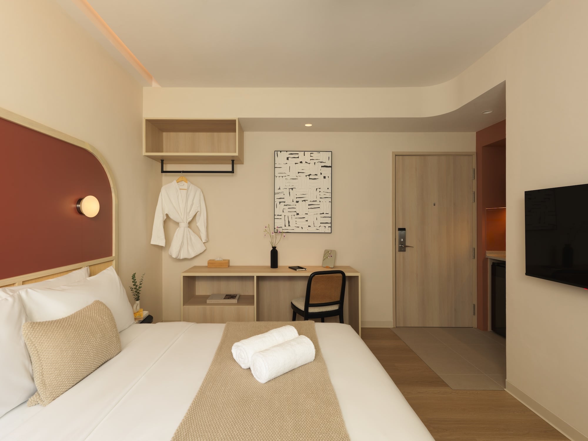 The Initial Sama offers a mix of room configurations for short-term stays of at least six nights, as well as longer-term stays with no fixed cap.